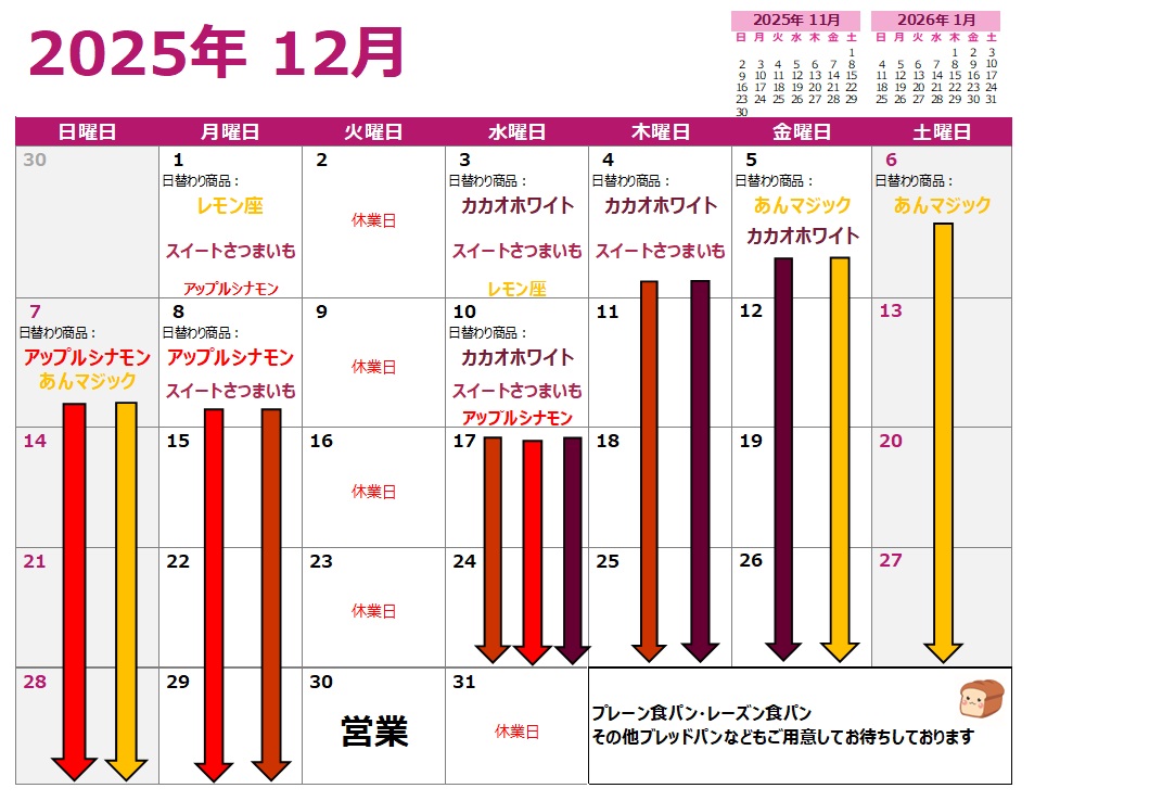 12月営業日カレンダー